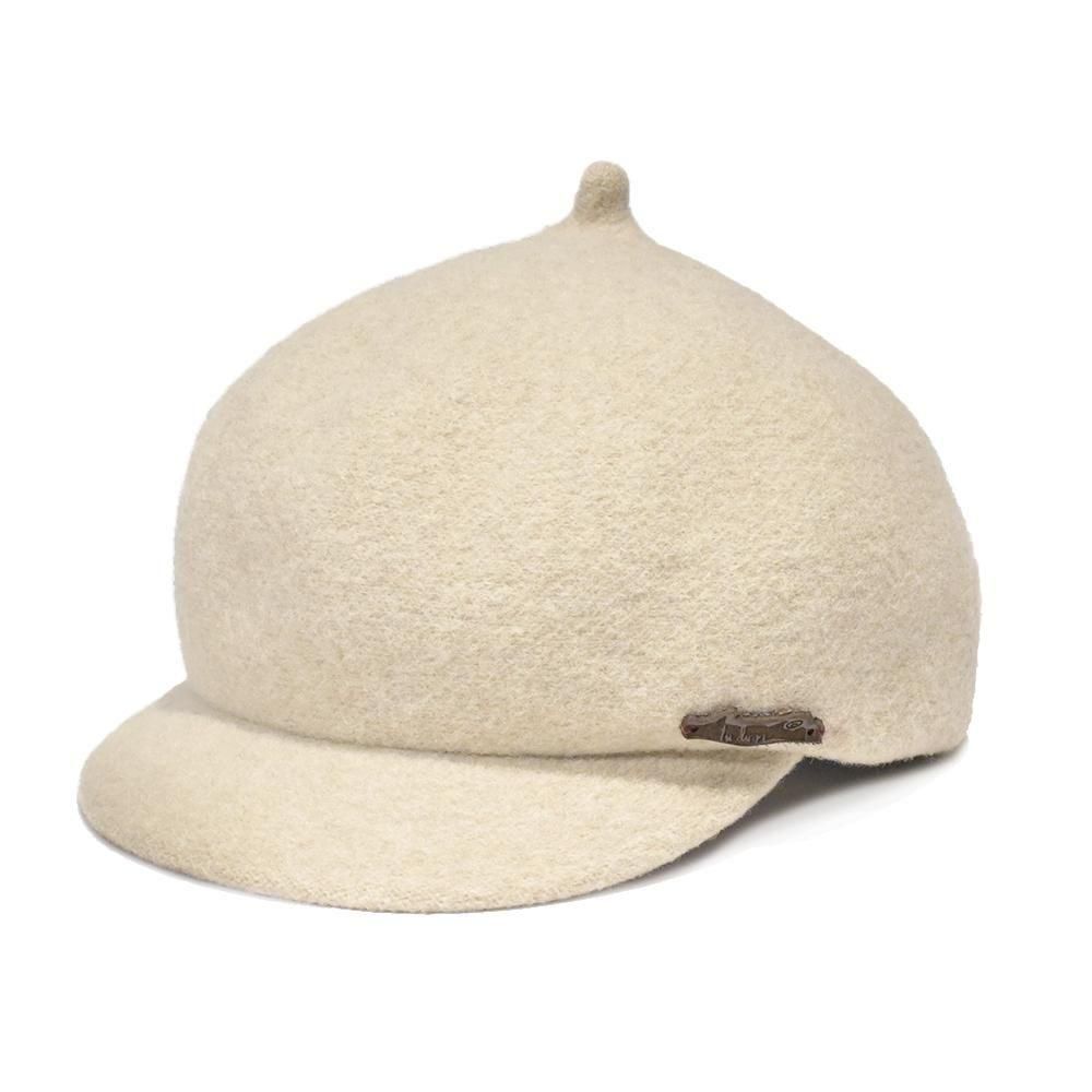 にんにくのようにツンと尖ったトップがポイントのキャスケットです。