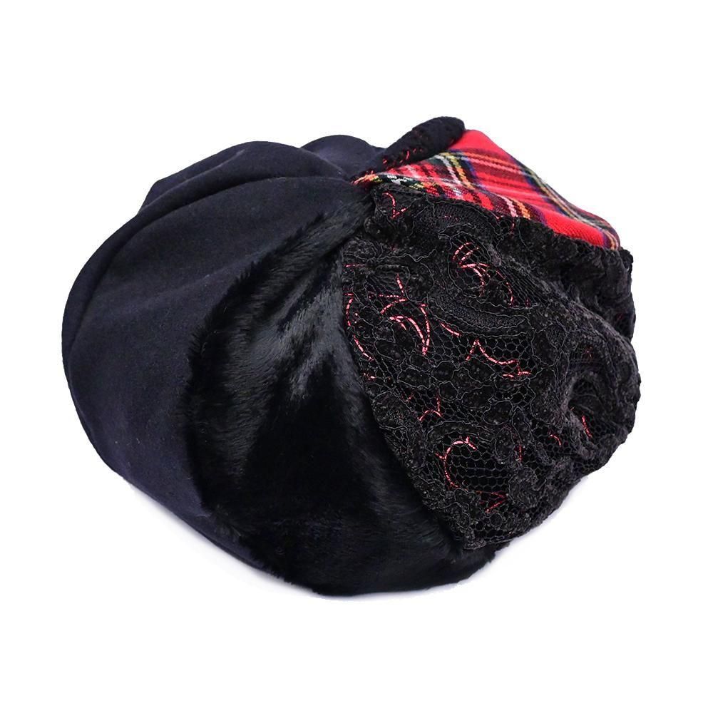 無地のウール、モールレース、ファー、チェック地など5種の素材を選りすぐりドッキングされ、豪華に仕上がっています。