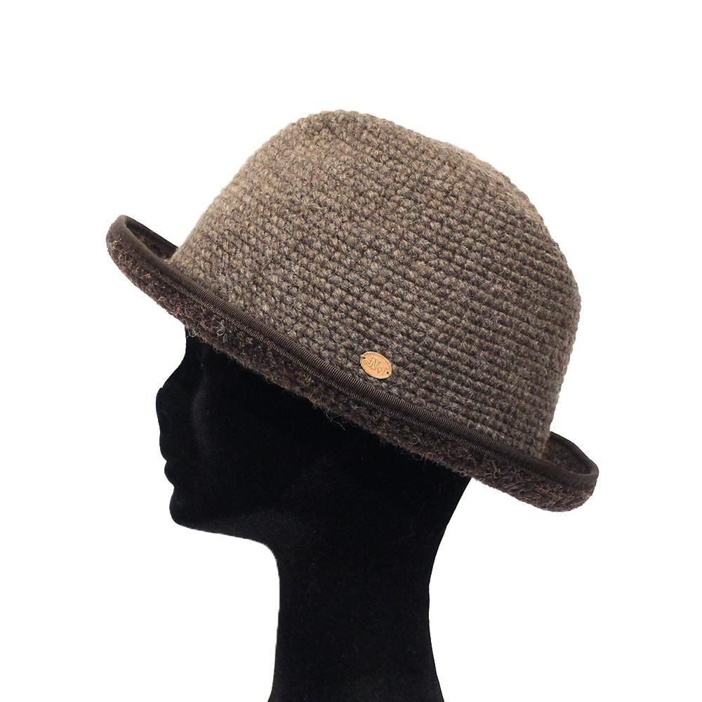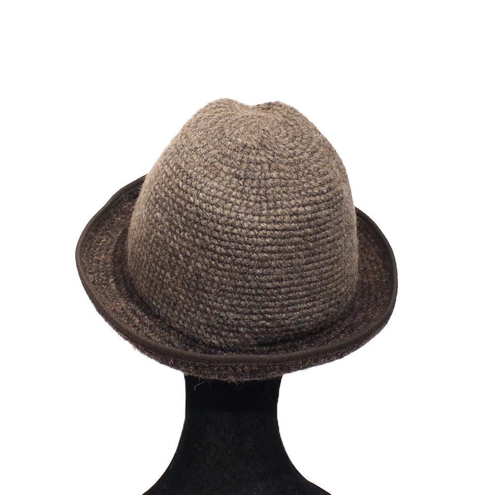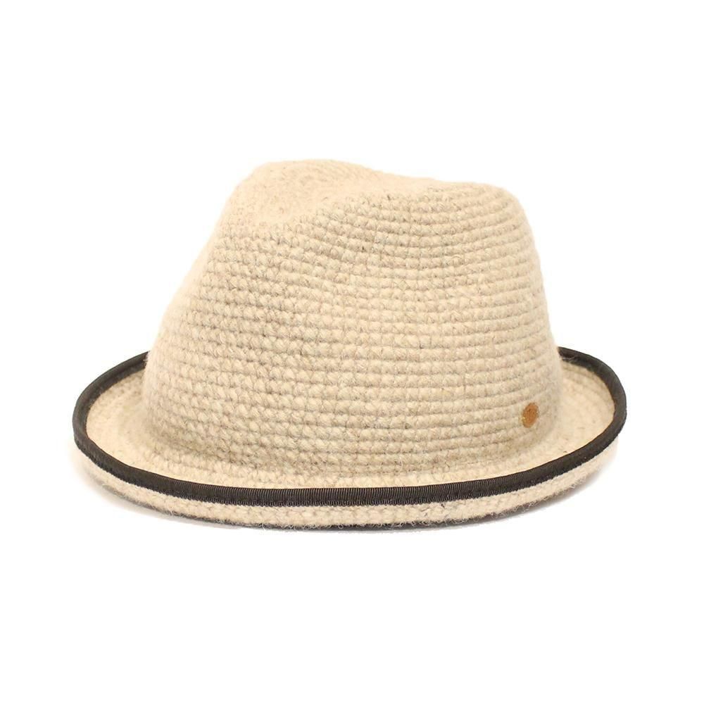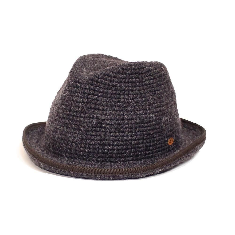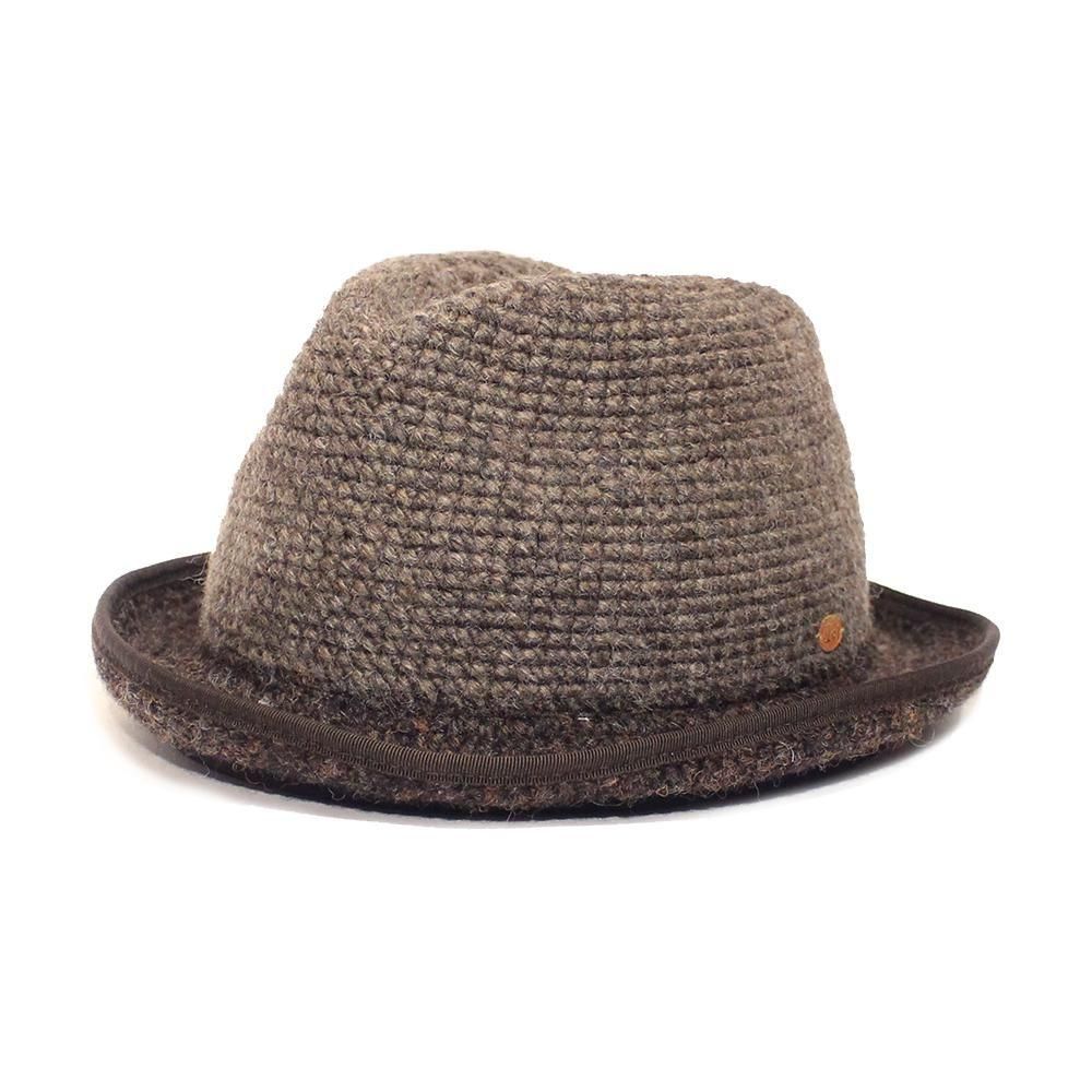 紡毛糸を細編みで丁寧に編み上げたオールアップブリムの温かみあるハット。