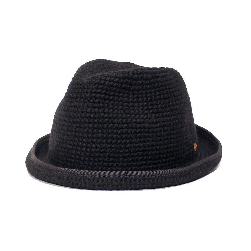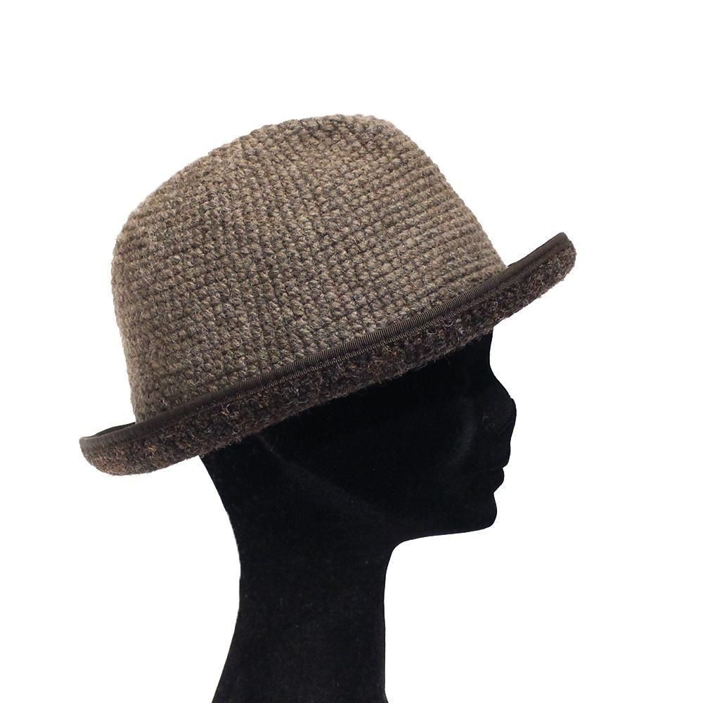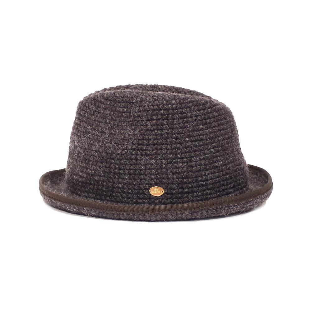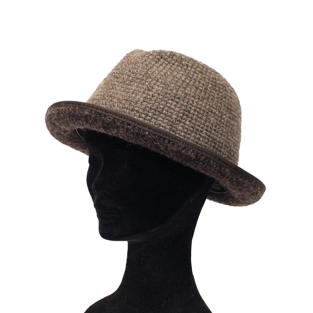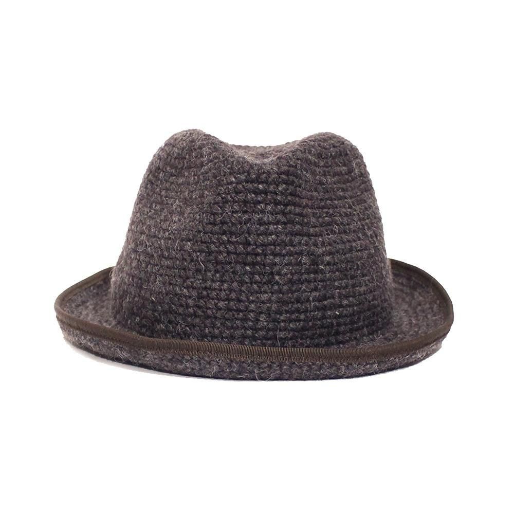 紡毛糸を細編みで丁寧に編み上げたオールアップブリムの温かみあるハット。
